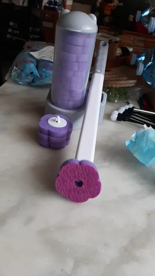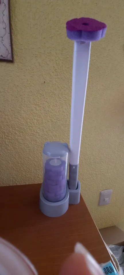 Artículos de buena calidad, el soporte para cabezales de limpieza y el mango de limpieza son resistentes al uso. Con cuidado ambos artículos deberían durar mucho tiempo. Se necesitan unas cuantas veces para colocar el cabezal de limpieza en el mango con una mano como tiene que intentar alinear el clip del mango hasta el orificio del cabezal, pero una vez que se domina la habilidad, no lleva mucho tiempo poner el cabezal en el mango, agite el cabezal en el agua del inodoro unas cuantas veces para activar el producto de limpieza, limpie el inodoro, deje caer el cabezal usado en el contenedor, enjuague el inodoro y enjuague el mango al mismo tiempo, luego coloque el mango en la ranura de drenaje del soporte. Compré el juego de soporte y mango de cabezas moradas y el olor de las cabezas es agradable. También compré el juego de cabezales de repuesto mixto de 36 piezas y los cabezas azules huelen bien. ¡Muy recomendable!