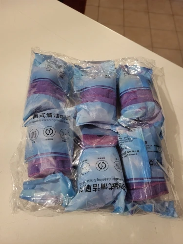 Grandes esponjas de limpieza. Genial, todo se quita y el inodoro brilla. También están cosidos con suficiente detergente.